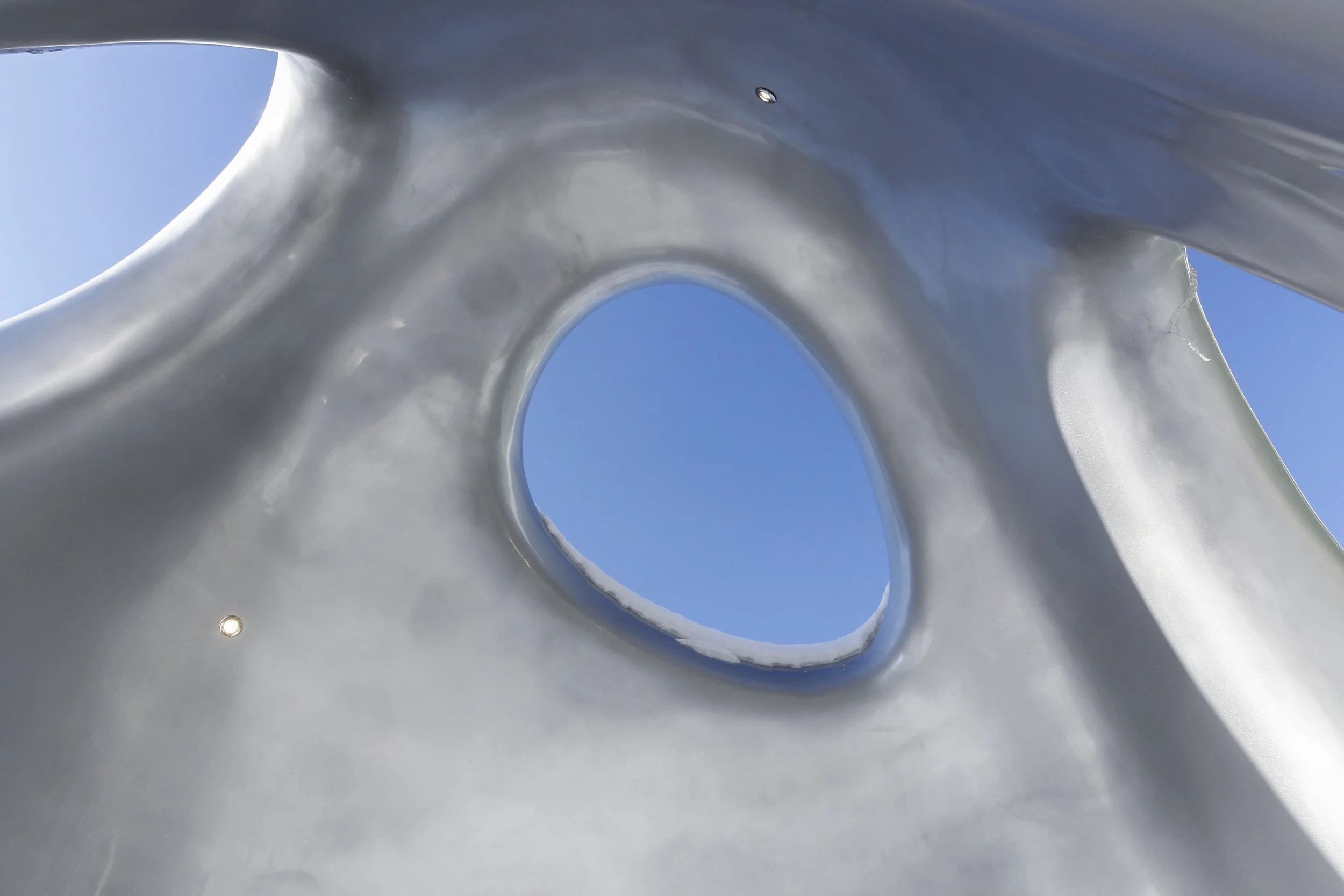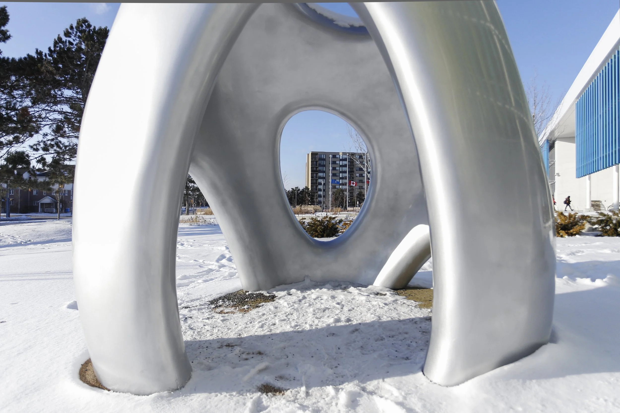Fossil Record is a permanent public art installation in Mississauga that evokes geological time and humanity’s fleeting place within it. Shaped like an unearthed artifact or cast-off shell, the sculpture suggests erosion, layering, and ancient formations, inviting viewers to reflect on impermanence and ecological legacy.