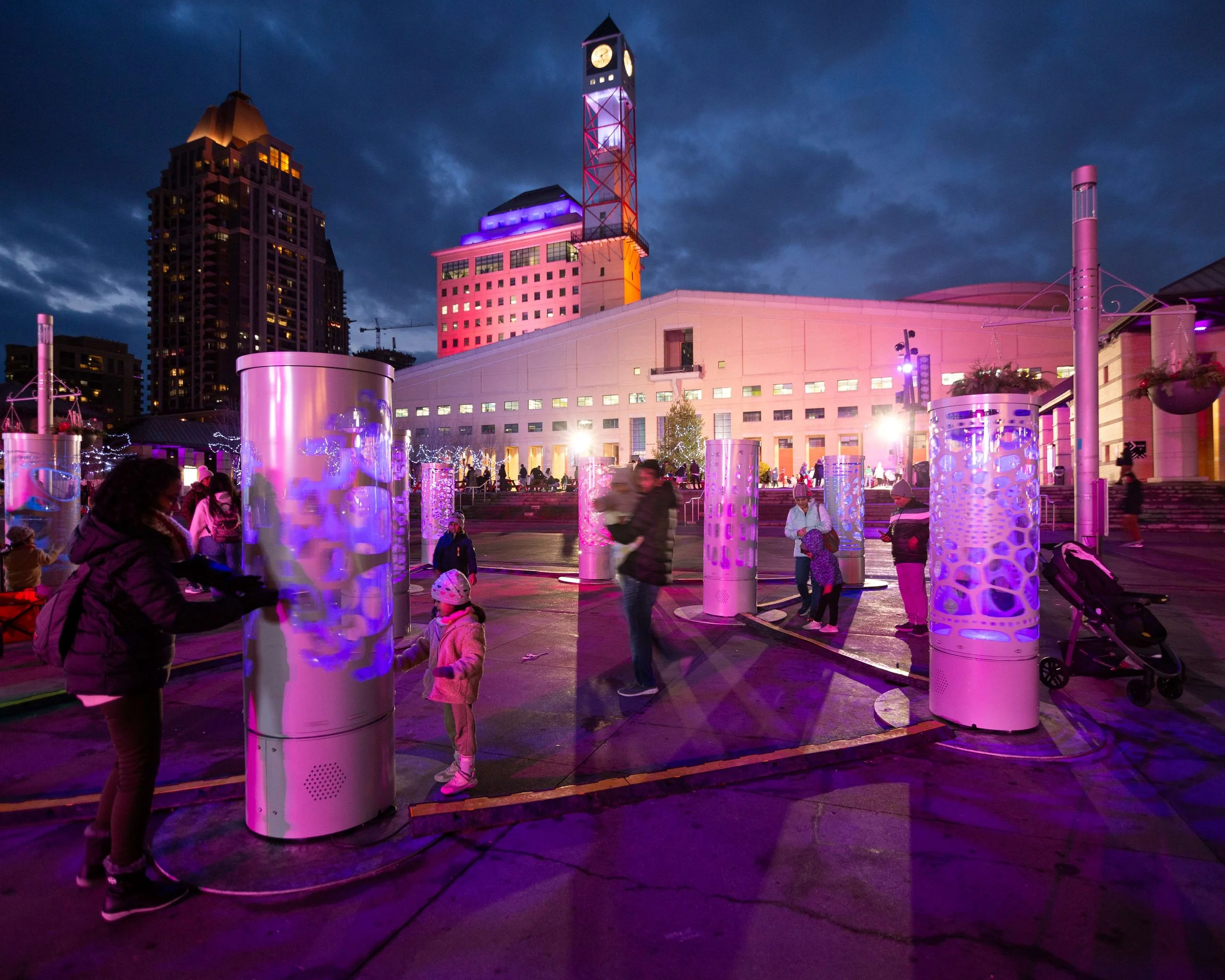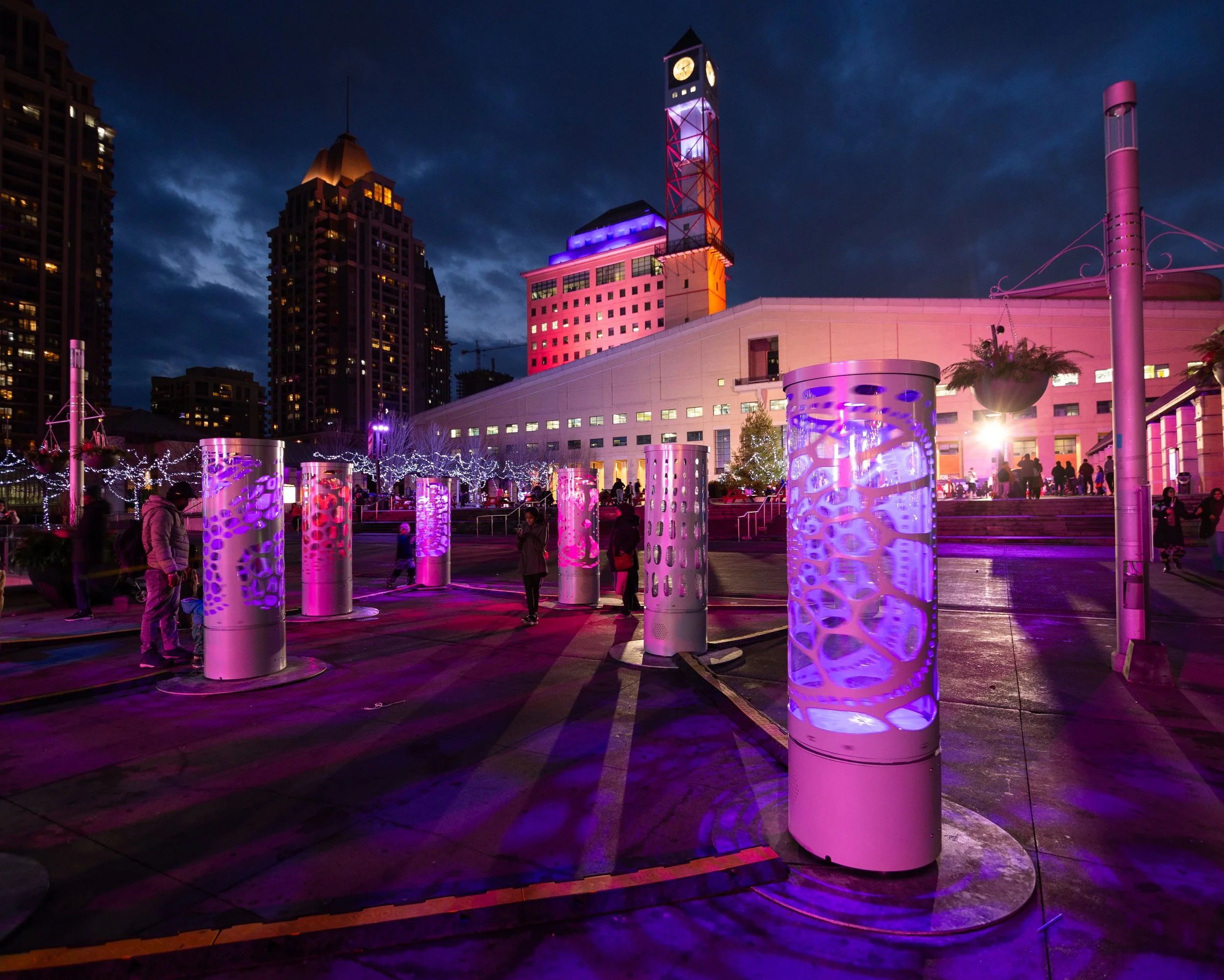 Biolumen is an immersive art installation inspired by Radiolaria—microscopic marine organisms whose delicate, sunlit forms reveal the hidden beauty of ocean life. Composed of 9–10 modular cylinders, each 85 inches tall and crafted from plexiglass and intricately laser-cut metal panels, the installation combines projection mapping, interactive lighting, and soundscapes to transport visitors into a vibrant underwater microcosm. Designed for museums, cultural centers, and public spaces, Biolumen invites audiences to reflect on biodiversity, environmental stewardship, and our deep connection to the natural world while offering a durable, adaptable, and captivating multisensory experience.